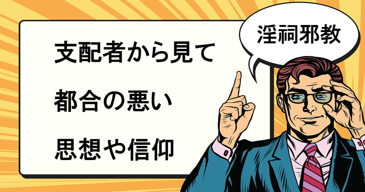 淫祠邪教とは、国家権力や地域の支配者などから見て都合の悪い宗教や思想、民間信仰をさす言葉です。