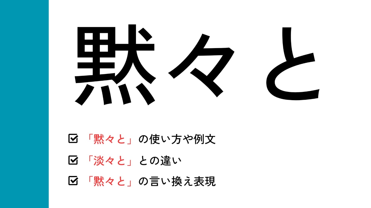 この記事では「黙々と」の意味や使い方について解説いたします。日常会話やビジネスシーンなど幅広い場面で用いられることがある言葉だからこそ、ぜひ知っておきたい言葉です。